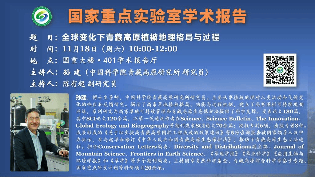 讲座预告:全球变化下青藏高原植被地理格局与过程