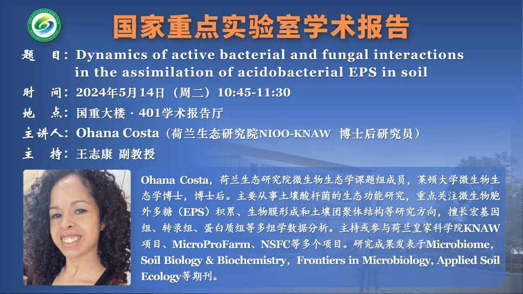 讲座预告:Dynamics of active bacterial and fungal interactions in the assimilation of acidobacterial EPS in soil