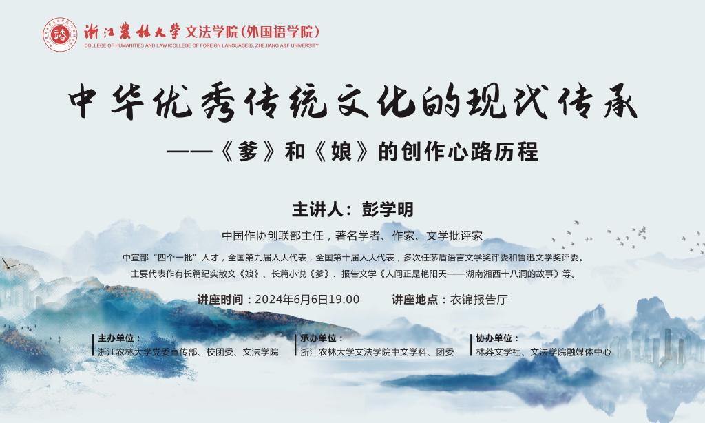 讲座预告:中华优秀传统文化的现代传承——长篇小说《爹》和《娘》的创作心路历程