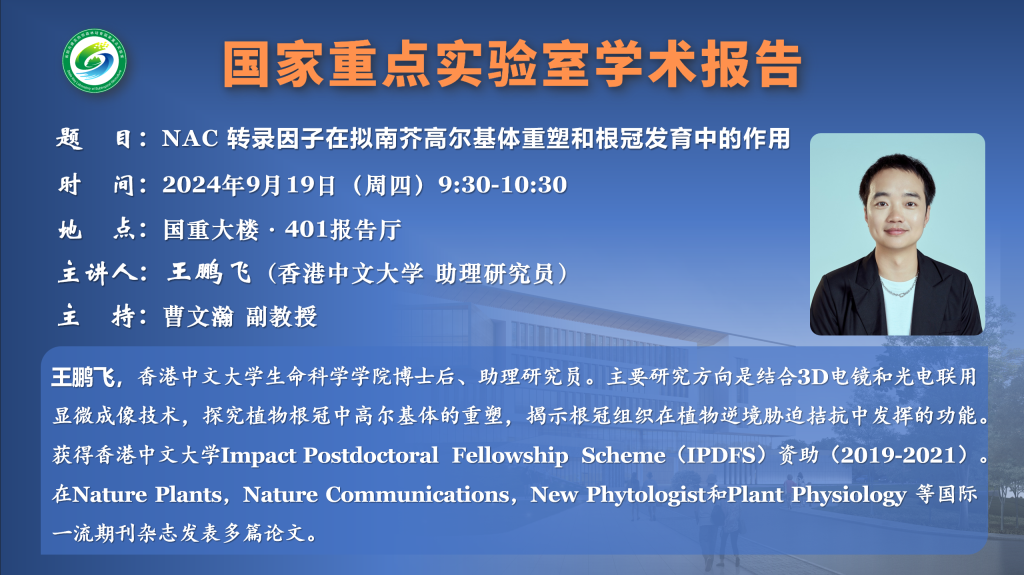 讲座预告:NAC 转录因子在拟南芥高尔基体重塑和根冠发育中的作用