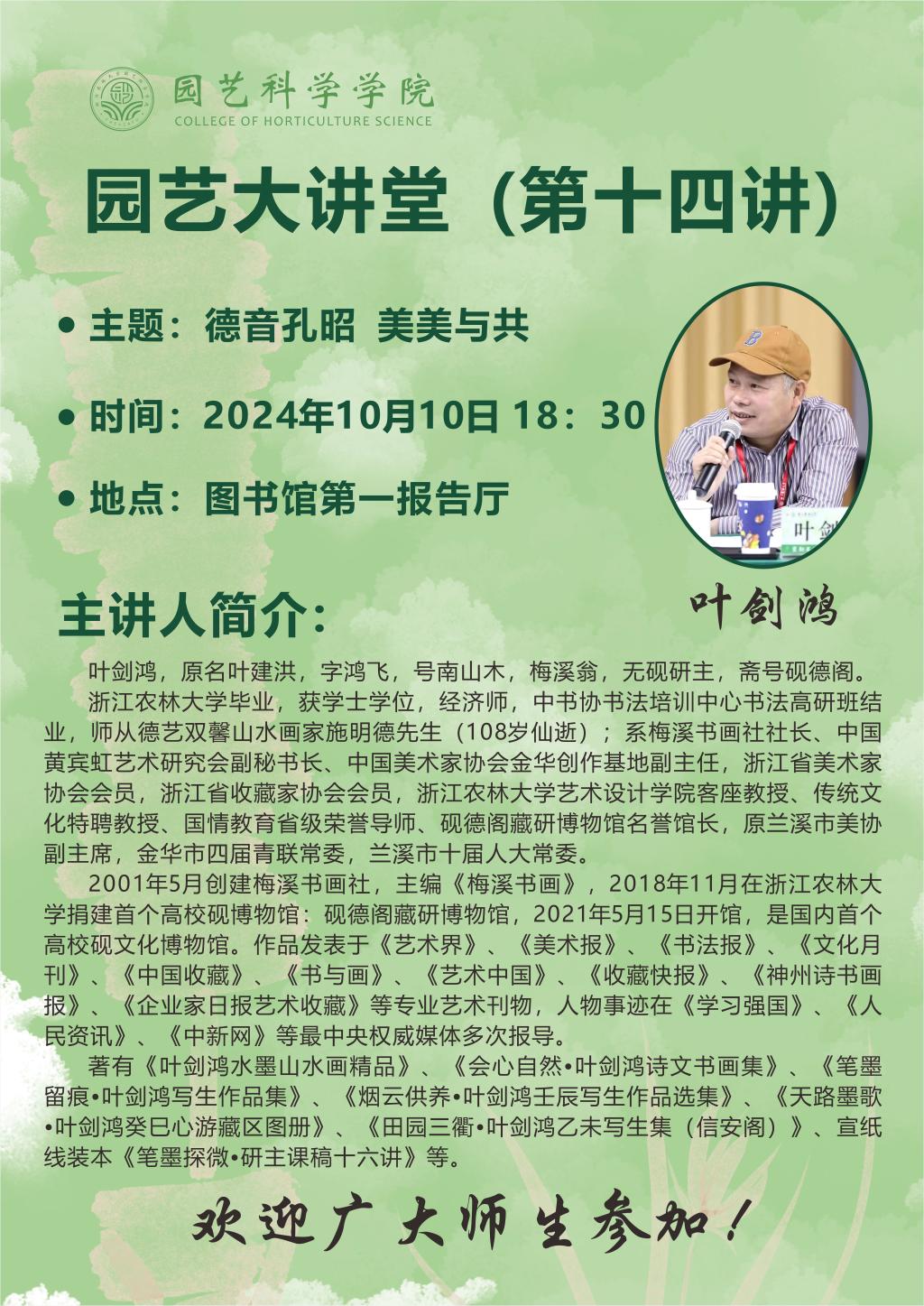 讲座预告:园艺大讲堂——德音孔昭 美美与共