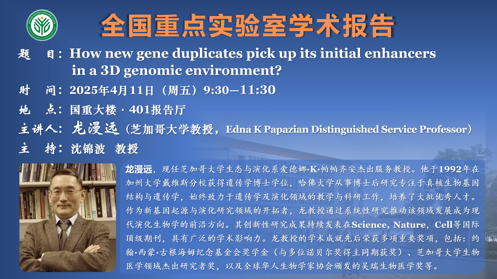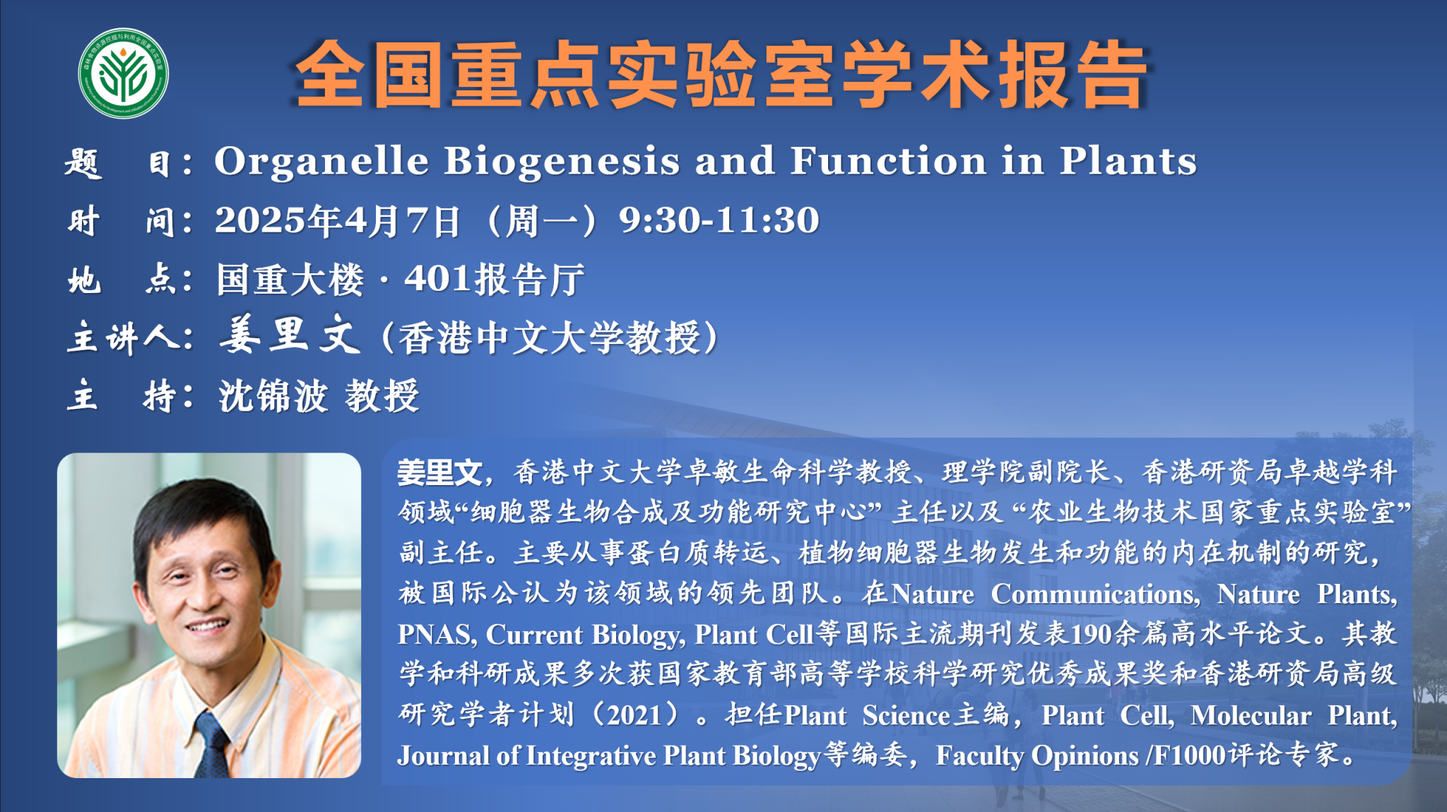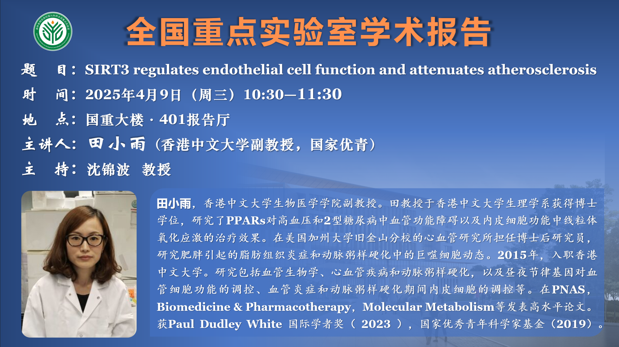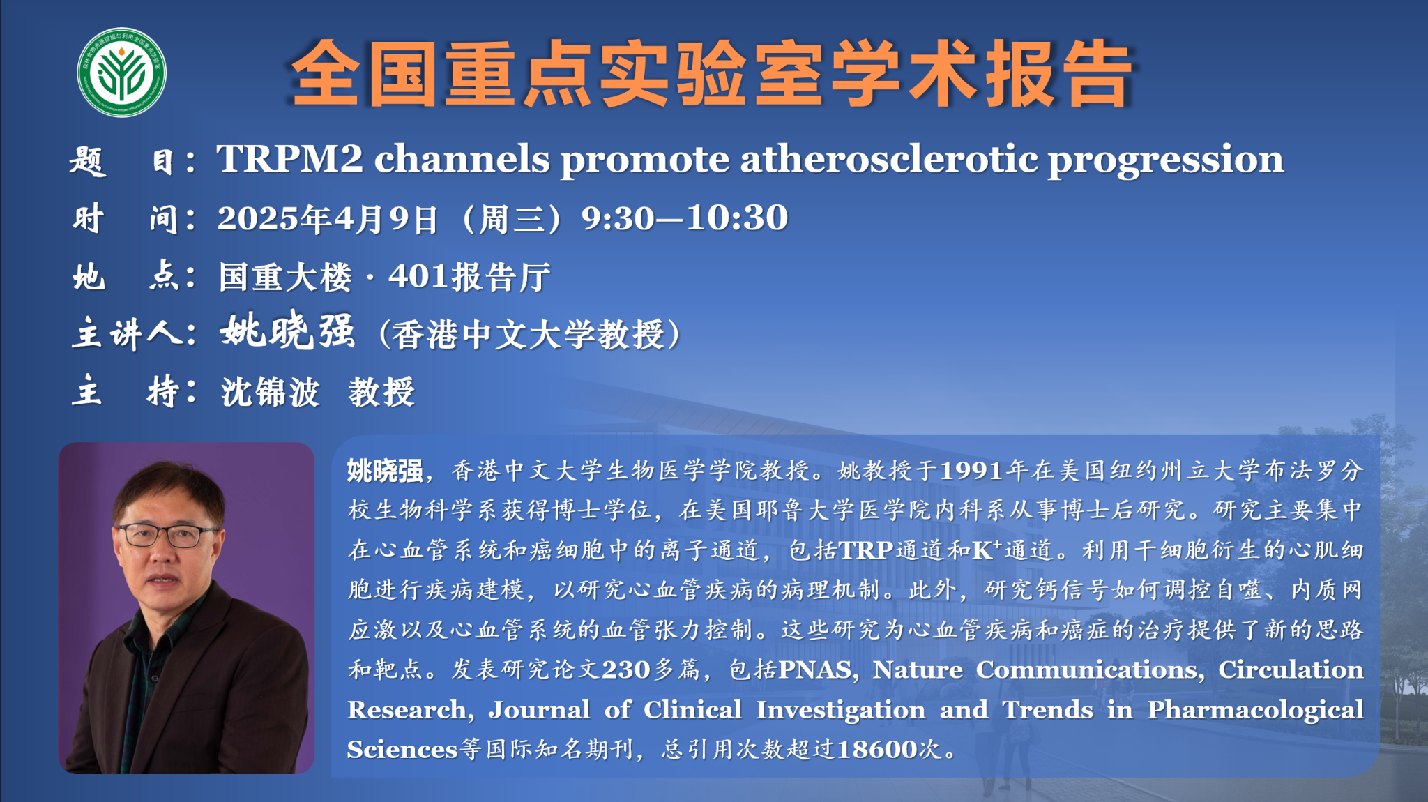 讲座预告:全国重点实验室系列学术报告