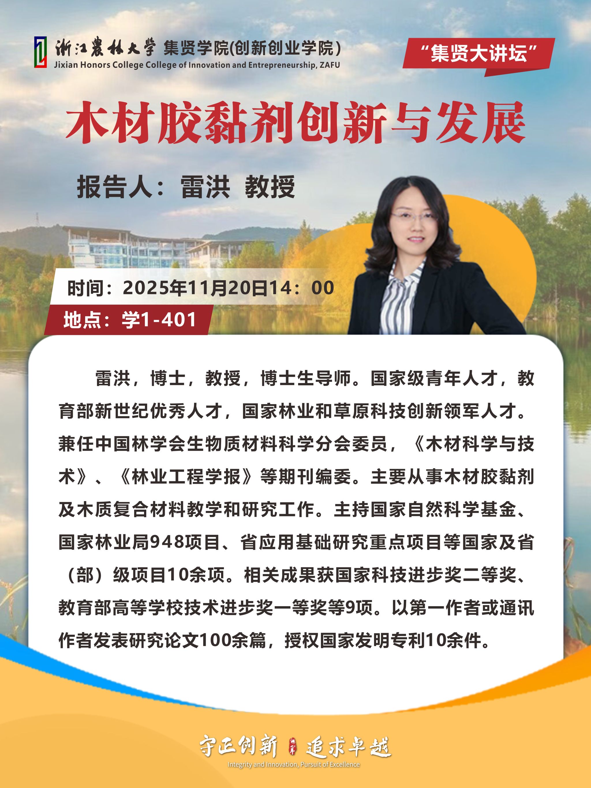 讲座预告:“集贤大讲坛”——雷洪教授:木材胶黏剂创新与发展