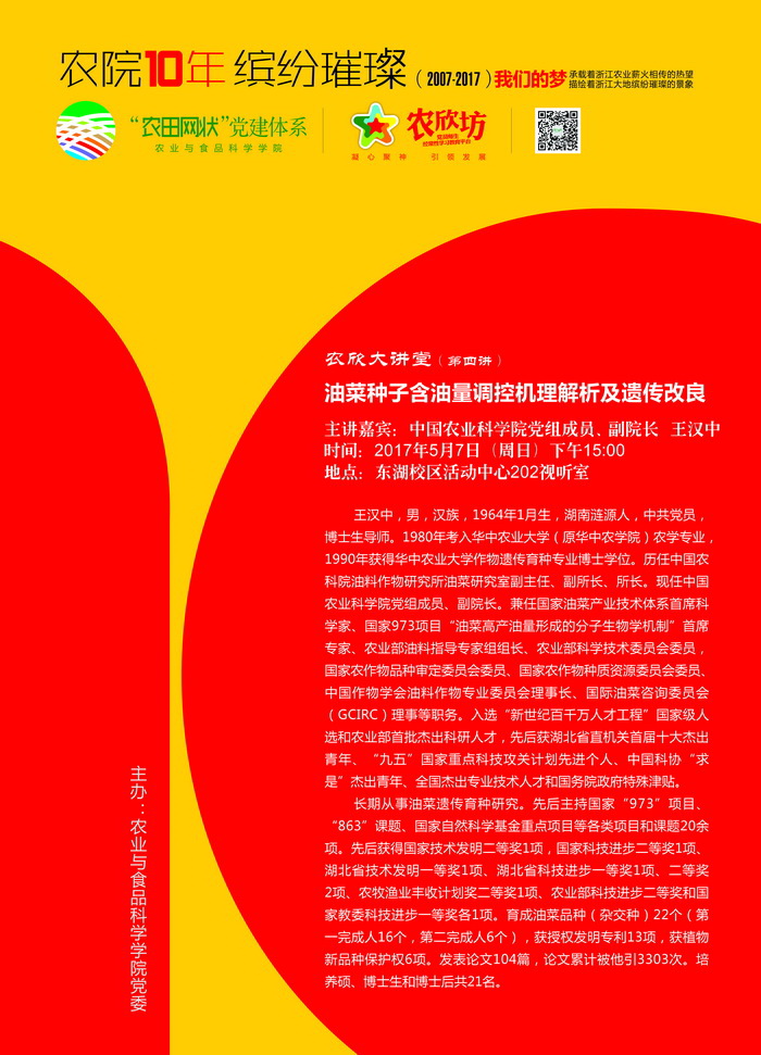 农欣大讲堂(第四讲):中国农科院副院长王汉中《油菜种子含油量调控机理解析及遗传改良》