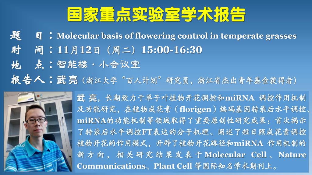 学术报告:Molecular basis of flowering control in temperate grasses