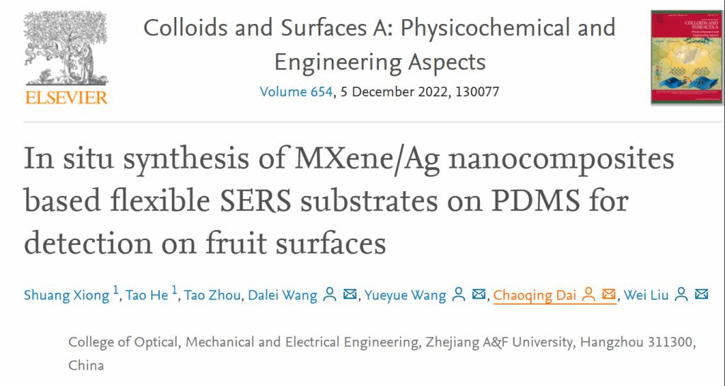 拉曼光谱作为一种快速无损的检测被广泛应用于生物检测中,在前期工作中,团队以贵金属和MXene为复合衬底,对低浓度的农药进行检测,可实现微量农药的检测,为生态农业提供了可靠的技术支撑,这一项工作发表在Colloids and Surfaces A: Physicochemical and Engineering Aspects(中科院2区,IF=5.518),BEAT365英国官网为唯一单位,通信作者为王悦悦教授、戴朝卿教授、刘威副教授。