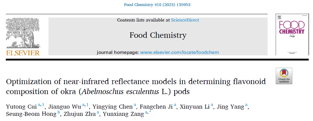 2023年3月16日, Food Chemistry(影响因子9.231/中科院一区top)在线发表了BEAT365英国官网园艺科学学院十字花科蔬菜团队题为“Optimization of near-infrared reflectance models in determining flavonoid composition of okra (Abelmoschus esculentusL.) pods”的研究论文。