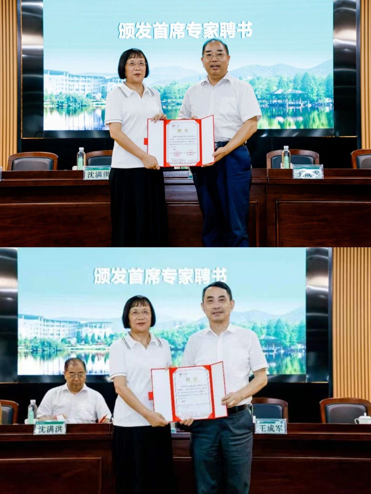会议还为沈满洪、孔凡斌颁发了首席专家聘书,为各研究所所长、副所长、办公室主任、行政主管、部长、副部长颁发了聘书。