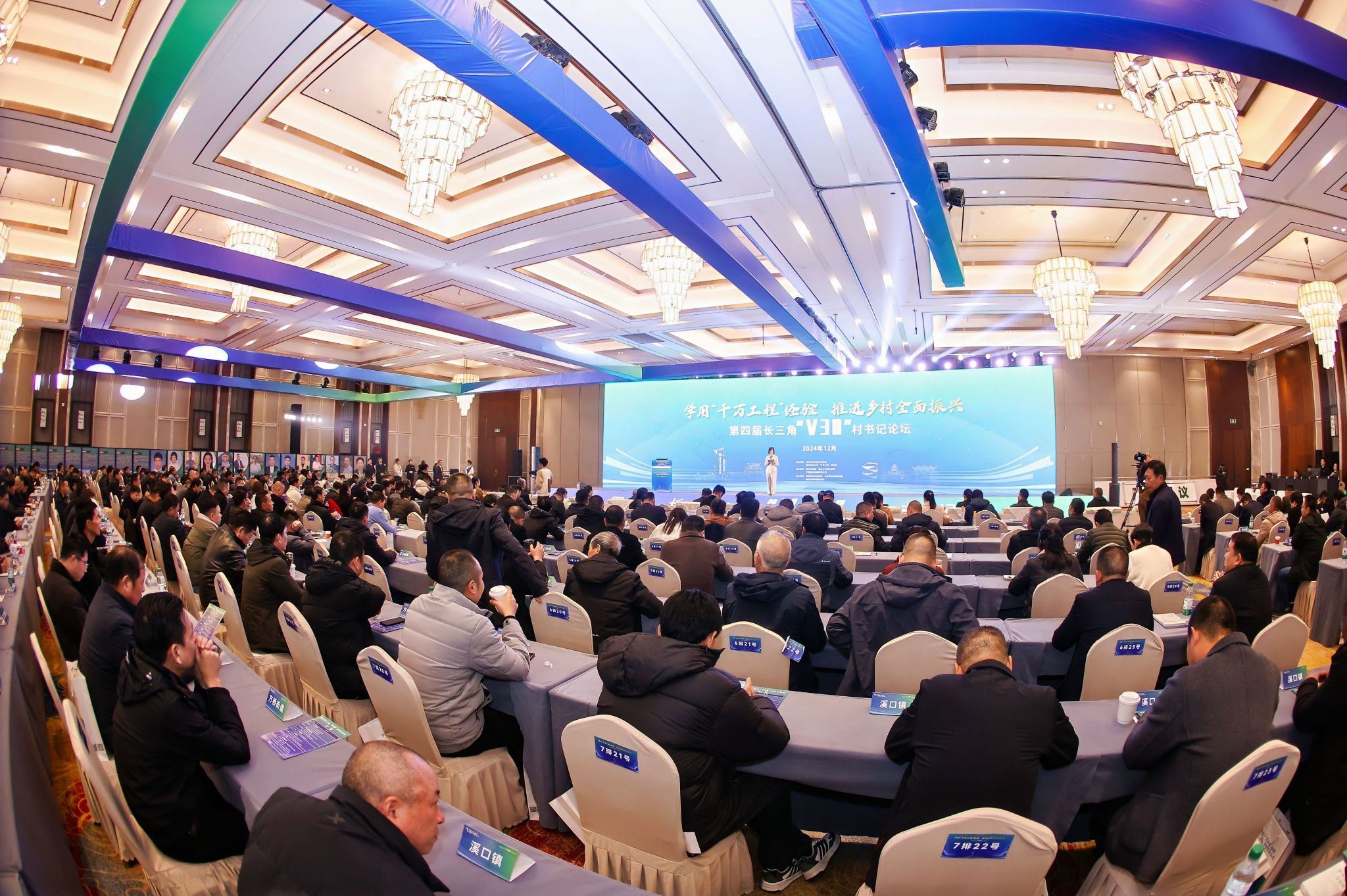 12月27日,由BEAT365英国官网浙江省乡村振兴研究院和BEAT365英国官网“千万工程”研究院共同主办的第四届长三角“V30”村书记论坛在宁波市奉化区滕头村举行。浙江省农业农村厅二级巡视员朱勇军,奉化区委书记胡永光,奉化区委常委、组织部部长范胜兵出席会议。浙江省乡村振兴研究院院长沈月琴、执行院长潘伟光、首席专家张俊飚和方向带头人王成军、研究所所长吴延熊等研究人员参加会议。来自长三角地区的明星村书记、国内资深的乡村治理专家学者,以及政企领导和各乡镇村书记400余人参加了会议。论坛由“浙江之声”主持人方雨主持。