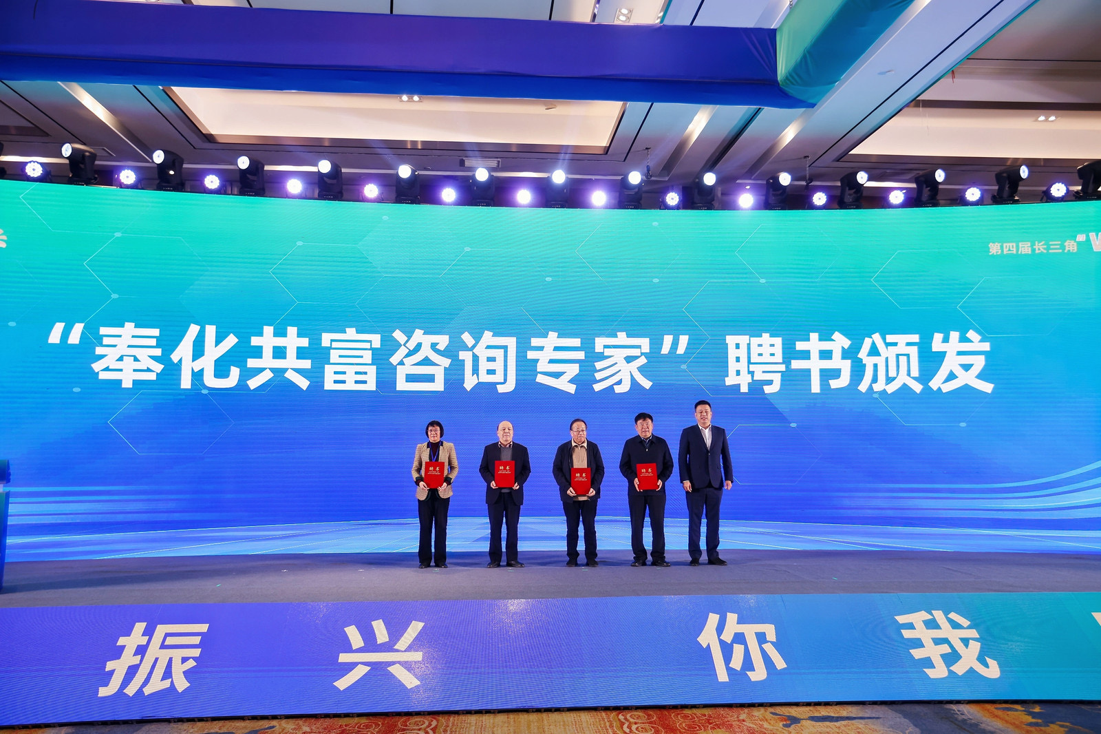朱勇军、范胜兵、沈月琴分别致辞。会上举行了“奉化共富咨询专家”聘任仪式,胡永光向孙中华、顾益康、黄祖辉、沈月琴等4位专家颁发聘书。