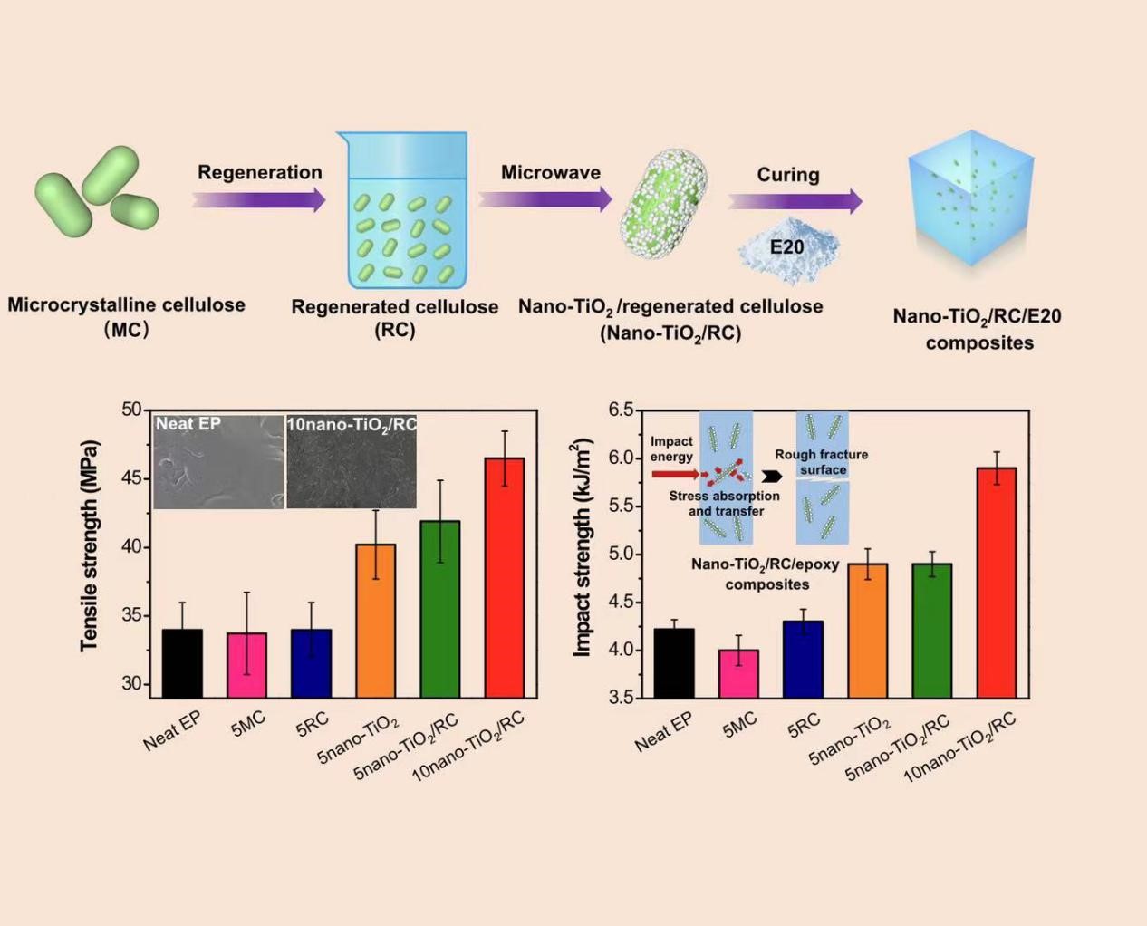 “A nano-TiO2/regenerated cellulose biohybrid enables simultaneously improved strength and toughness of solid epoxy resins”于2021年5月29日发表于复合材料领域国际期刊《Composites Science and Technology》(IF=8.525)上。第一作者为本校博士研究生杨佳瑶,指导老师为BEAT365英国官网傅深渊教授、刘晓欢博士和南昆士兰大学宋平安教授。