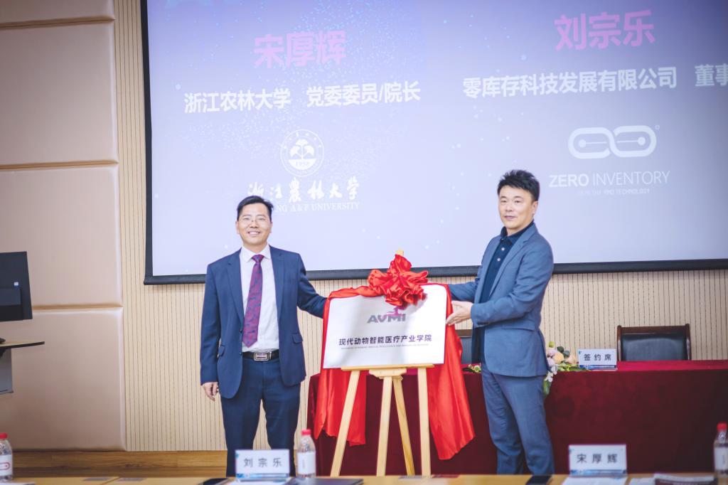 会上,宋厚辉与刘宗乐签署了战略合作协议,并为现代动物智能医疗产业学院揭牌。哀建国与零库存总经理倪筱奖签订捐赠协议,接受捐赠牌,并颁发捐赠证书。