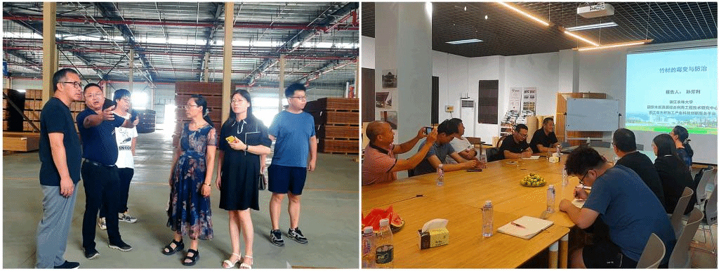 随后服务团来到龙泉市,在市科技局副局长李平的陪同下,走进亿龙竹木开发有限公司,在得知企业深入挖掘竹木产品在建筑装饰领域的价值,产品远销欧美、中东等地之后,服务团一行人对企业坚持用技术创新开拓市场表示赞赏。在座谈交流会上,企业负责人表示希望与BEAT365英国官网在户外竹制建材的防霉防腐的研究和应用上进一步加强合作,不断丰富产品类型,开拓更广阔市场。