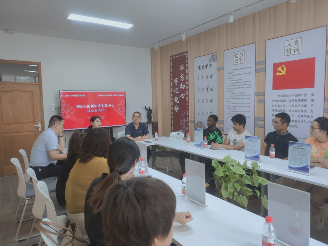 9月23日下午,国际教育学院(孔子学院)与中国(杭州)跨境电子商务综合试验区(临安园区)在国教学院会议室召开推进国际生创新实践工作座谈会,共商加强双方合作及国际生实习事宜。临安跨境电商园区负责人、企业代表、国教学院领导及相关辅导员参加座谈会。