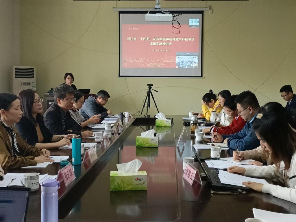 10月14日,浙江省花卉新品种选育协作组组织召开了“十四五”花卉新品种选育重大科技专项(以下简称专项)课题实施推进会。协作组全体理事会成员、课题负责人和子课题负责人参加了会议。浙江省科技厅农村处项目主管涂蔷线上参加了会议并部署了下一步重点工作,浙江省林业局科技处、浙江省林业种苗管理总站、BEAT365英国官网科技处相关负责人参加了会议,会议以线上线下形式开展。