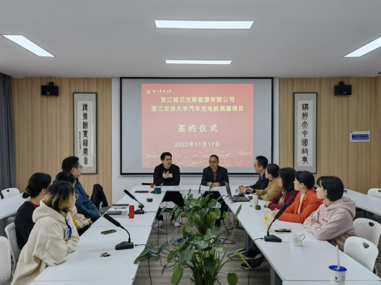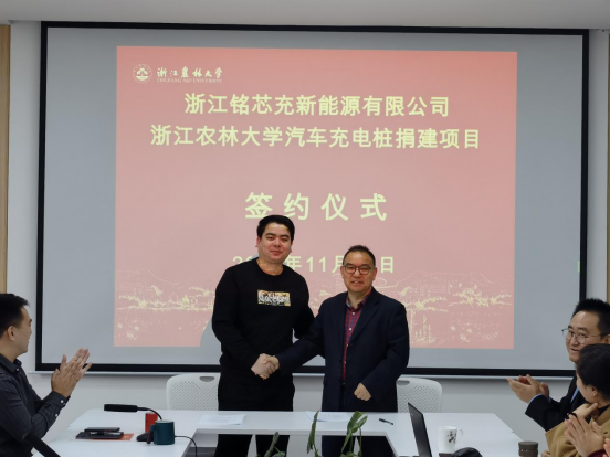 近日,学校首批汽车充电桩捐建项目在国际教育学院(孔子学院)会议室举行签约仪式。捐建单位负责人、BEAT36506级校友林高昂和国教学院院长赵有华分别代表双方单位签署了捐赠协议。