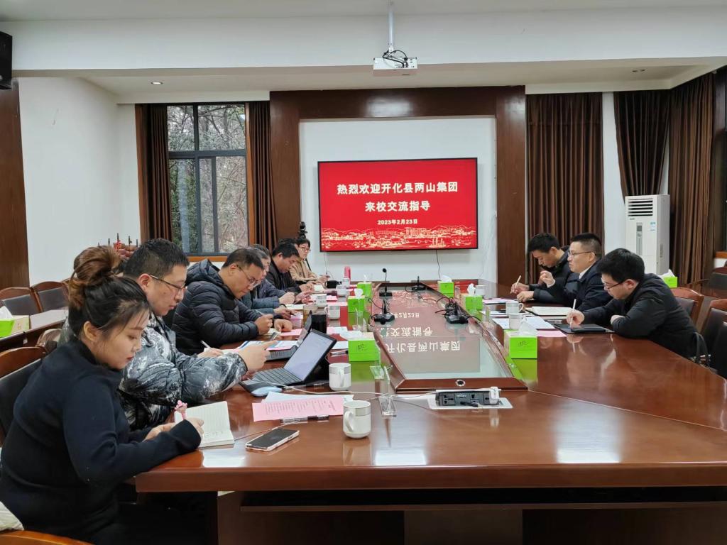 刘兴泉代表学校对两山集团徐浩一行表示热烈欢迎,并介绍了学校社会合作工作的基本情况以及发展目标,他表示期待与两山集团深入推进品牌建设,不断提升校企双方的合作力度。经管学院院长吴伟光详细介绍了学院的悠久办学历史,以及学院在师资力量、科学研究等各方面取得的主要成就,共同回顾了与开化县的扎实合作基础和深厚情谊。徐浩表示,高校对地方经济发展提供的人才和智力支持是不可替代的,期待校企双方在不远的将来能相互成就,优势互补,扎实推进高水平合作,共同为区域社会经济发展贡献力量。