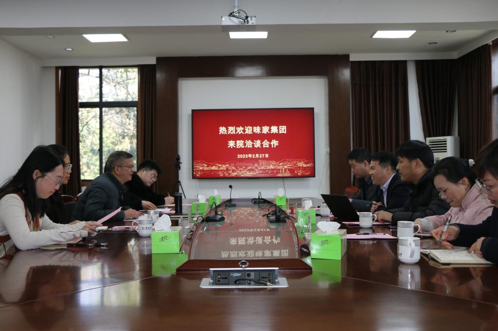 院长吴伟光代表经管学院对味家集团董事长钭祖军一行表示热烈欢迎,并详细介绍了学院的悠久办学历史和师资、科研等主要成就,他指出,学院与味家集团有良好的合作前景和扎实的合作基础,应取长补短,齐心协力,不断提升院企双方的合作力度。味家集团董事长钭祖军介绍了味家集团的基本情况,并提出目前在产业发展中面临的具体困难和需求,希望能得到学院智力支持和专业服务,期待院企双方扎实推进高水平合作,共同为区域社会经济发展贡献力量。