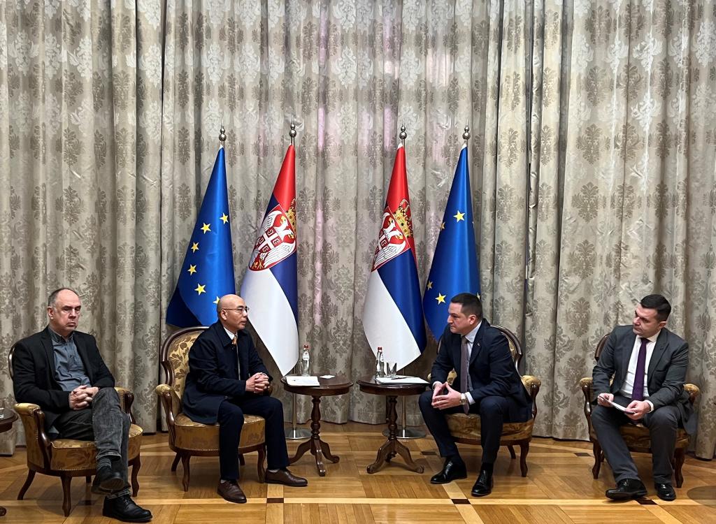 会谈在塞尔维亚总理府会客厅进行。塞尔维亚教育部副部长兼高等教育司司长博阳▪ 图比奇(Bojan TubiĆ),副部长兼国际合作司司长亚历山大▪约维奇(Aleksandar JoviĆ),诺大孔院相关教师和塞尔维亚伏伊伏丁那华人商业联合会会长邹军伟等旅塞华人侨领陪同会谈。
