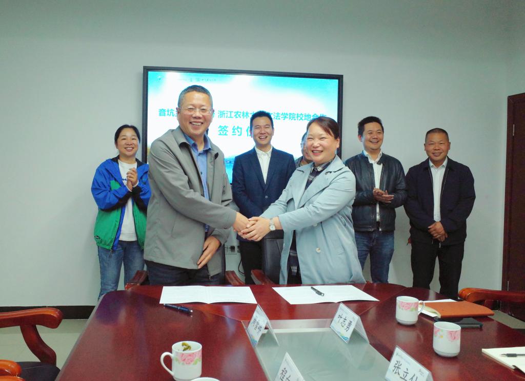 鲁可荣一行在音坑乡下淤村与音坑乡党委书记汪涛开展交流座谈,并签订校地合作协议。双方本着优势互补、互利共赢、共同发展的原则,共同推进乡村振兴、共同富裕工作。