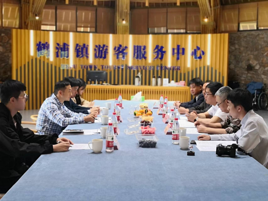 双方就象山县鹤浦镇和小百丈村发展的瓶颈与现实问题开展了座谈交流。陈先孝介绍了象山县鹤浦镇和小百丈村的基本情况。他指出,希望按照“五个一”的要求,共同推进鹤浦镇的发展。以小百丈村为试点,开展高校助力艺术赋能村创建,构建“党建+研学+旅游”融通的合作体系,合力创建小百丈艺术赋能村,共同推进海岛乡村振兴。