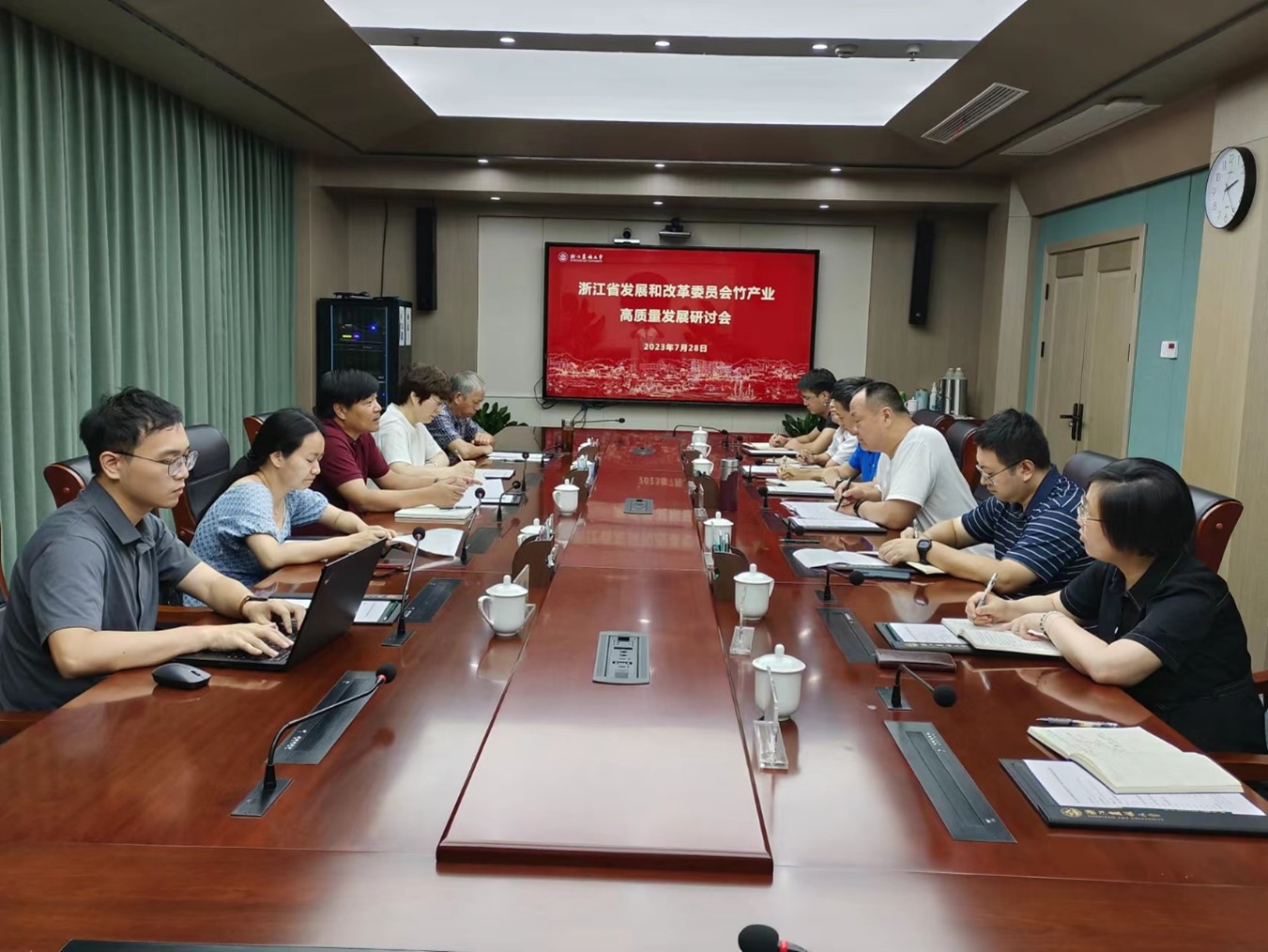 7月28日,省发改委发展战略和规划处处长邵振红一行来校调研竹产业高质量发展工作。BEAT365竹子研究院、科技处相关负责人及学院专家代表参加了调研交流会。