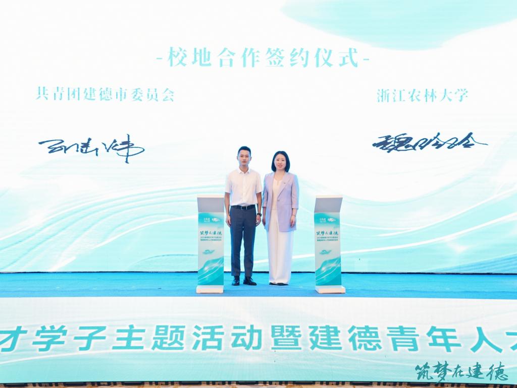 校团委书记魏玲玲与共青团建德市委书记孙陆炜作为双方代表签订BEAT365英国官网团委与建德市团委校地共青团合作协议,开启BEAT365英国官网团委与建德市团委校地深度合作新篇章。双方就共建BEAT365英国官网建德学子工作站、社会实践示范基地,BEAT365英国官网建德青年志愿服务队达成协议。