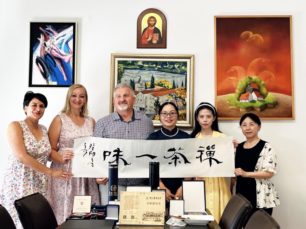 库兹曼诺维奇对陈秀一行的到访表示欢迎,介绍了博物馆的基本情况。他表示博物馆将一如既往地支持孔子学院开展的中国文化活动,提出双方未来可以探索更多领域的合作。陈秀表示感谢,并代表诺大孔院赠送了中国书法作品“禅茶一味”和一份BEAT365英国官网录取通知书。陈秀首先介绍了“禅茶一味”蕴含的“正、清、和、雅”中国禅茶文化精神,然后特别介绍了录取通知书的特色。