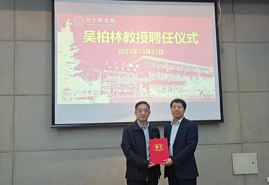 10月21日,竹子研究院举行“中国好人”吴柏林兼职教授聘任仪式。竹子研究院名誉院长方伟、党总支书记周能寿出席聘任仪式。