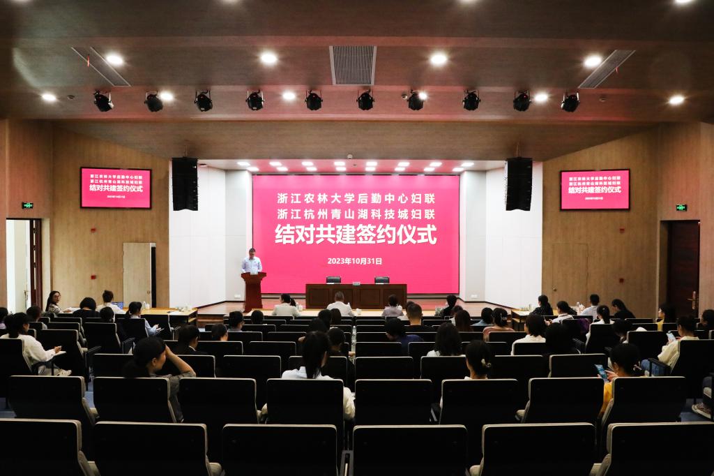10月31日下午,后勤中心妇联与临安区青山湖科技城妇联在学3国际会议厅举行结对共建签约仪式暨“‘剪’映”美好时光”短视频制作培训。后勤中心主任、党委书记吴通苗和临安区青山湖科技城妇联主席张许红等相关领导出席活动。临安区青山湖科技城妇联执委、企业代表,后勤中心妇联执委、妇女组长、女职工代表参加活动。