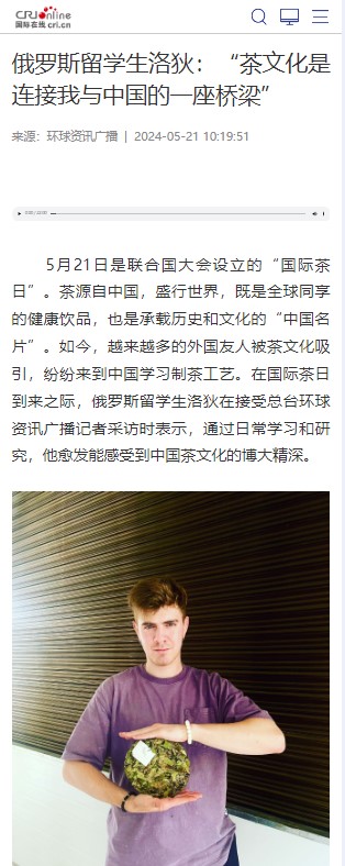 5月21日是联合国大会设立的“国际茶日”,BEAT365茶学院来自俄罗斯的留学生洛狄接受了国际在线记者的采访。