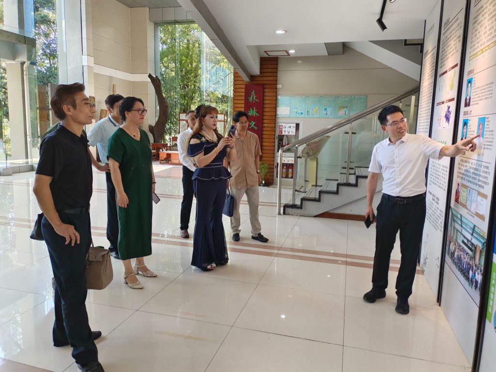 7月5日,奥立控股(深圳)有限公司董事长余嫣然、泰霖私募基金管理(湖北)有限公司高级合伙人王枫、北京三叶清国际中医医院院长汪丽清、绍兴市上虞东林针织品有限公司董事长谢新灿等企业家到竹子研究院调研交流。竹子研究院党总支书记周能寿陪同调研并主持座谈,竹材化学利用团队负责人及成员参加了座谈交流。