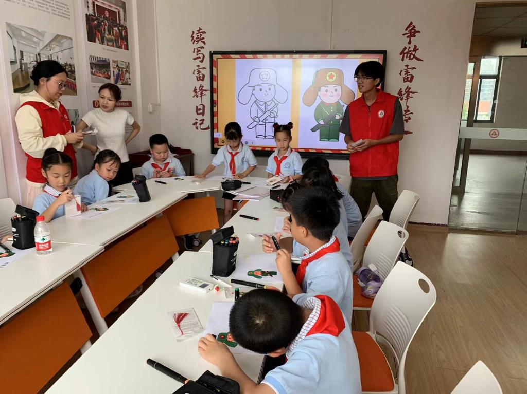 同时,志愿者们还组织了互动环节,引导同学们观看“雷锋班”宣传片,组织同学们参与绘画和涂色活动,用自己的画笔画出了心中的雷锋的形象,表达自己对雷锋的热爱以及坚持学雷锋的决心。志愿者们向同学们赠送了雷锋主题的书签,希望小朋友们能好好学习,传承雷锋精神,将来奉献社会。