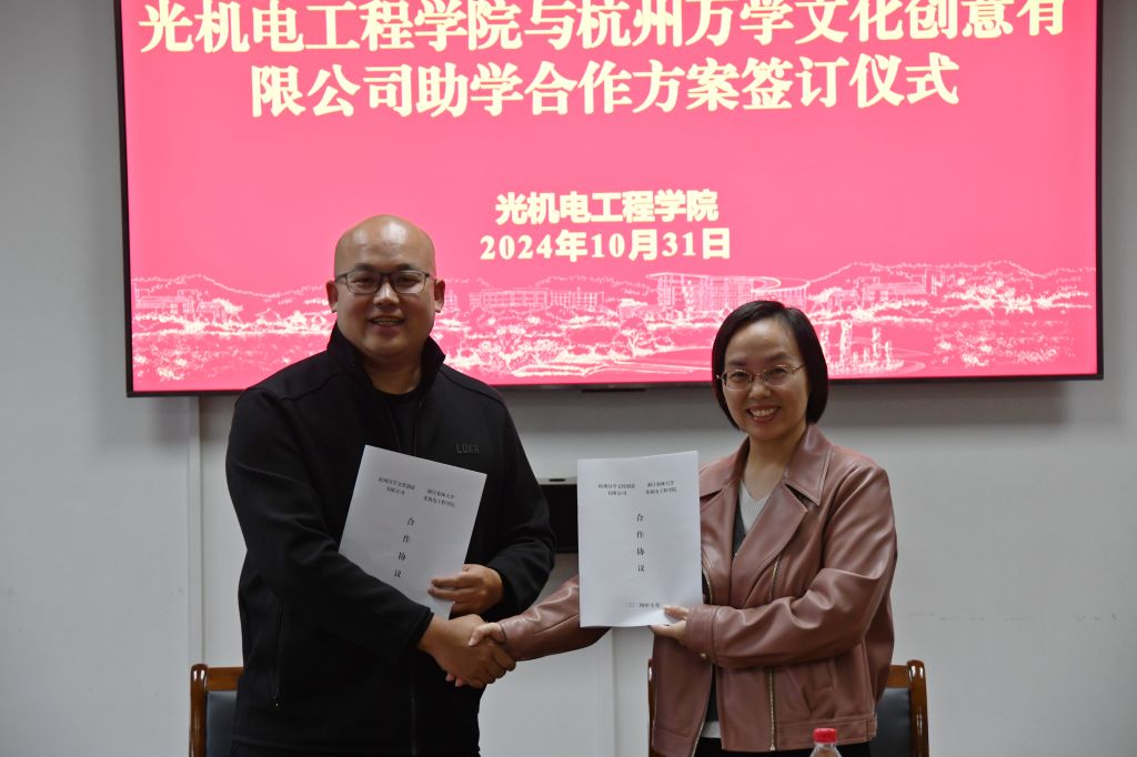 会上,双方就未来合作的方向和内容进行了深入交流,并达成共识。随后,双方代表签订了BEAT365英国官网教育基金捐赠协议与院企合作协议,进一步夯实合作。为表彰杭州万学文化创意有限公司对光机电学院教育工作的支持与贡献,学院特向其颁发了“金牌合作伙伴”纪念牌。