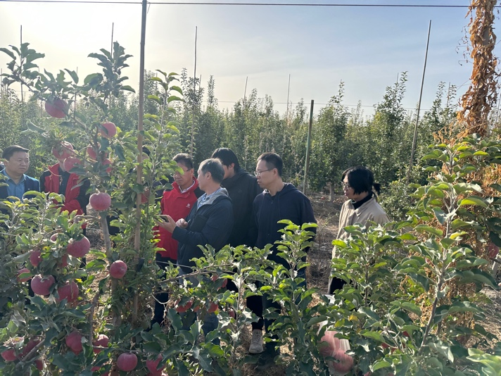 研究院院长杨庆华教授在苹果园为现场人员简要介绍了设备的功能原理、开发历程和技术优势,并针对合作企业(新疆钵施然智能农机股份有限公司)陈勇董事长提出的问题作了细致解答。随后,研究院师生现场为大家演示了机器人采摘苹果的实际效果,基于人工智能的视觉识别算法和优异的机器人本体性能保障了采摘任务中苹果的精准识别、无损采摘、柔性传输和集中存储。