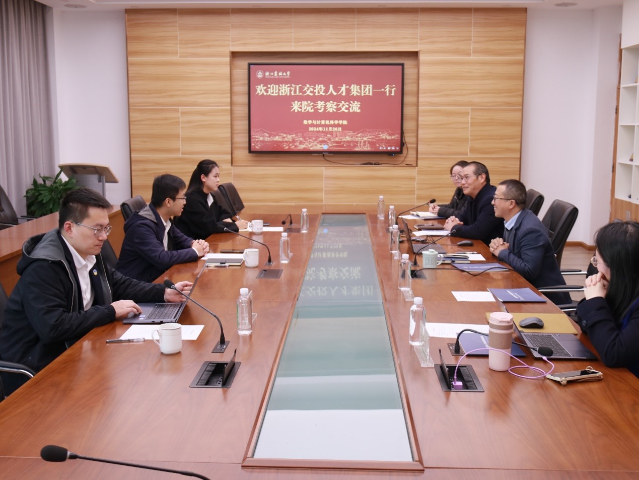 11月26日下午,浙江交投人才集团党委委员、副总经理林琛一行到访数计学院调研图书情报专业建设情况。数计学院相关负责人,统计学专业负责人及教师代表参与交流。