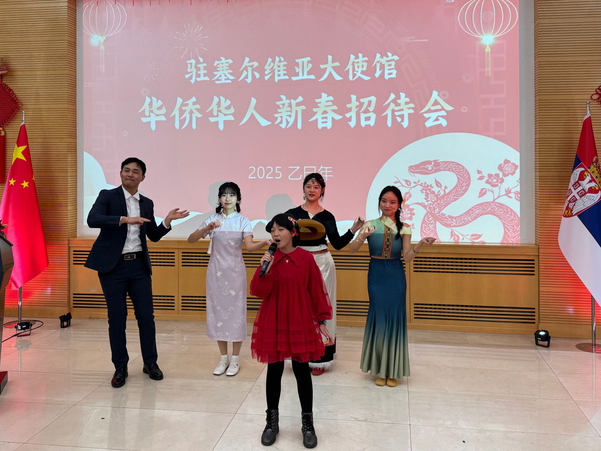 当地时间1月13日,中国驻塞尔维亚大使馆举办蛇年华侨华人新春招待会。驻塞大使李明、在塞各中资企业、各界华侨华人以及诺大孔院教师等近五百人应邀出席活动。