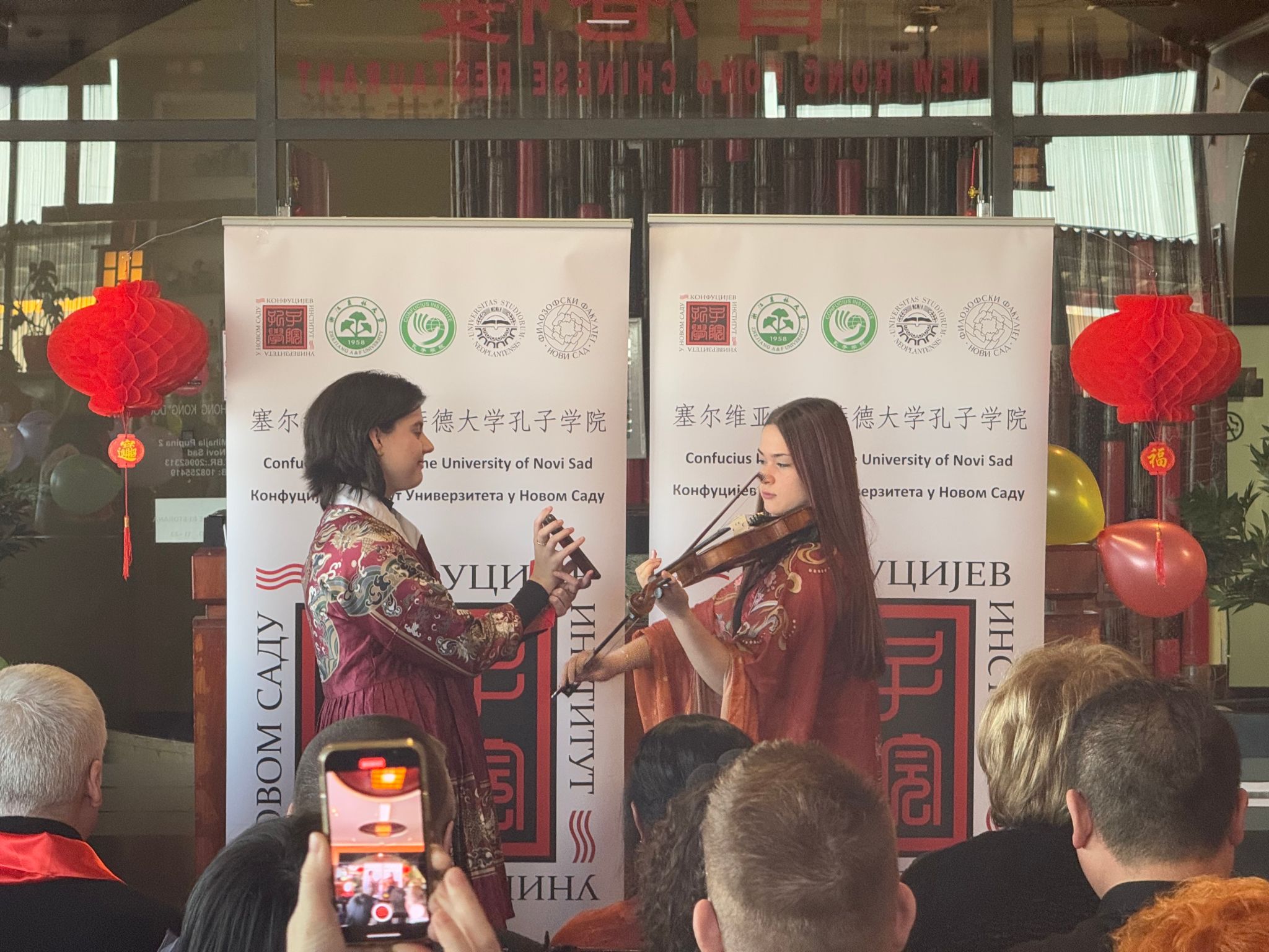 为迎接2025年蛇年春节,诺维萨德大学孔子学院在本部及各下属教学点举办了十余场丰富多彩的蛇年春节系列活动。塞尔维亚国际政治与经济研究所1月24日举办的2025年“金蛇呈祥,共贺新春”春节活动拉开了诺大孔院春节系列活动的序幕。诺大孔院孔子课堂卡尔洛夫茨语言高中(Karlovci Grammar school)及下属教学点诺维萨德市图书馆(City Library in Novi Sad)、苏博蒂察(Subotica)、佩特罗·库茨米亚克学校(Petro Kuzmjak school)等相继举办了线上线下蛇年春节文化活动。塞尔维亚国家电视台等多家媒体对诺大孔院的春节文化活动进行了现场采访与报道。