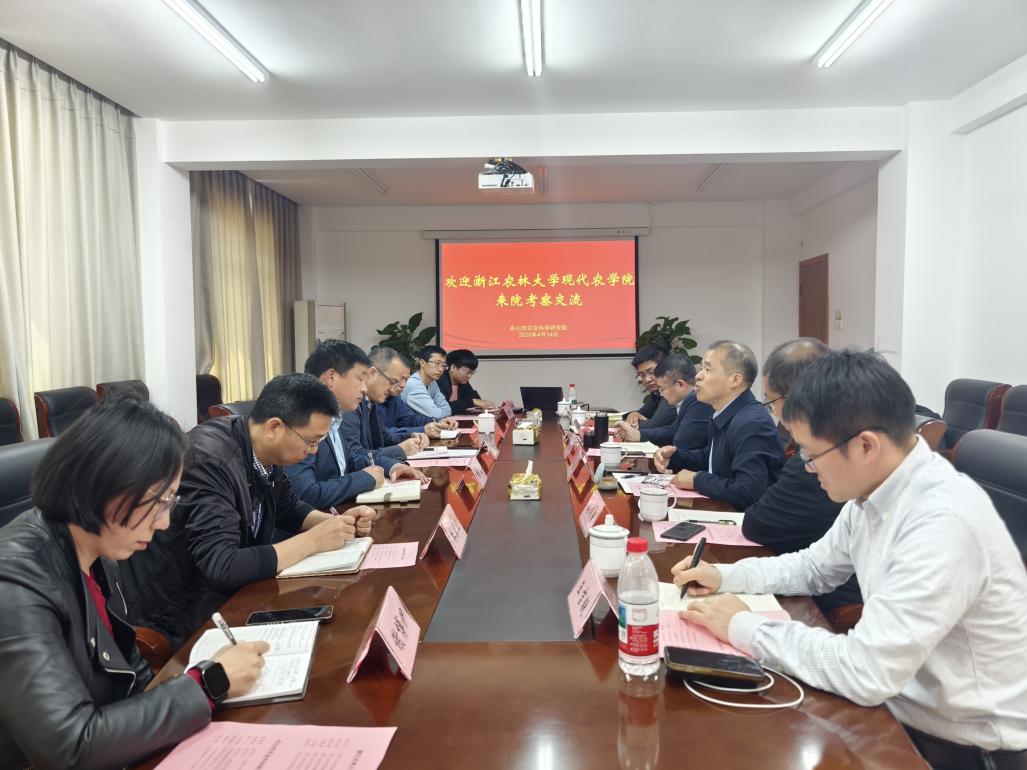 4月14日,农学院院长曾大力率队赴舟山市农业科学研究院开展交流调研。农学院相关负责人及教师骨干随行参加。舟山市农业科学研究院副院长(主持工作)傅建舟高级工程师,副书记张树宏,副院长杨飞高级农艺师等院领导班子成员及相关研究机构、部门负责人热情接待了来访一行。