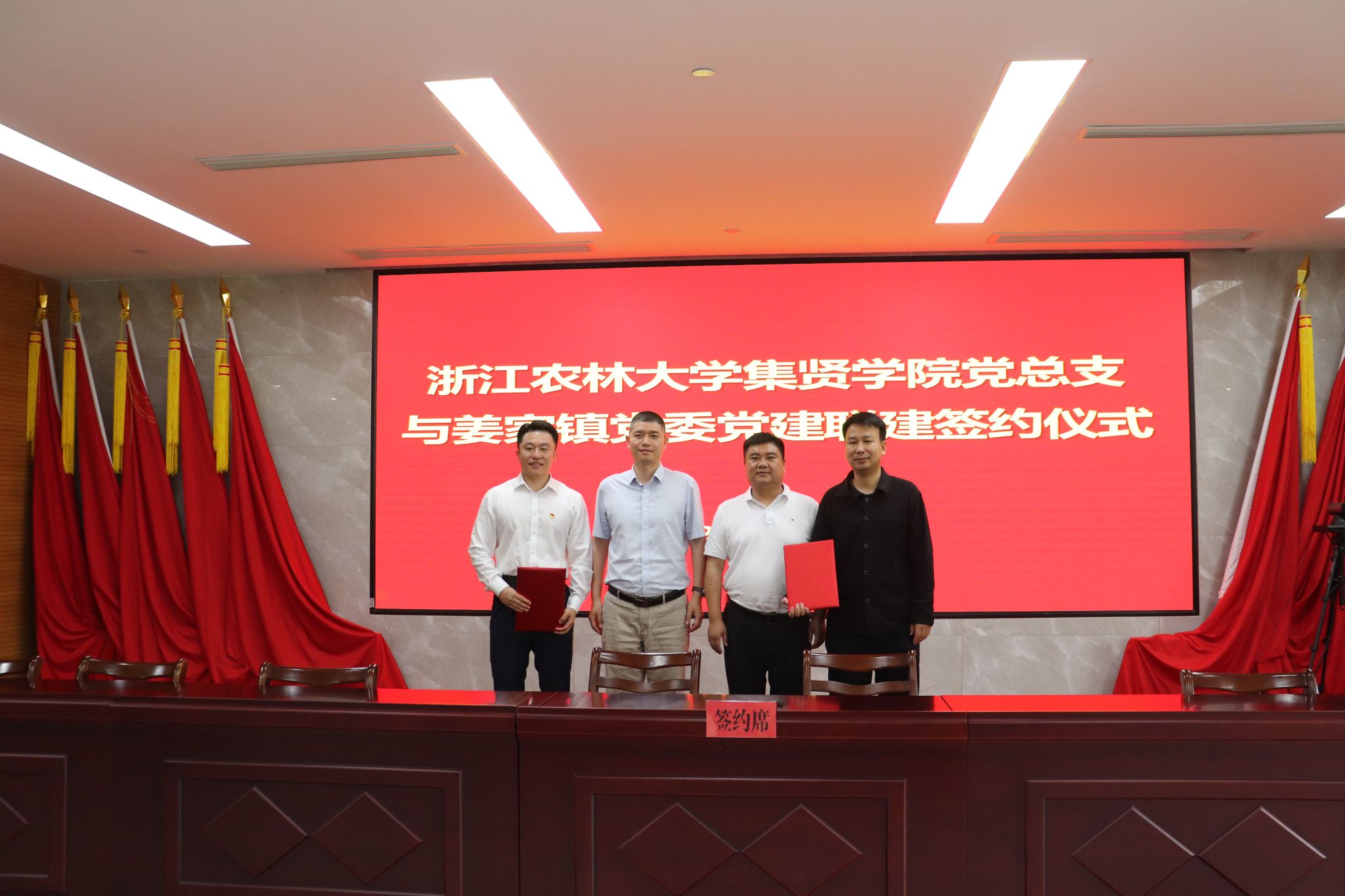 为进一步深化合作,集贤学院党总支与姜家镇党委现场签署《党建联建协议书》。双方将坚持“优势互补、资源共享、互惠互利、合作共赢”原则,通过开展短期实习、举办定向生座谈、聘任乡土专家为校外导师等形式,推动党建工作与人才培养和地方产业发展深度融合。