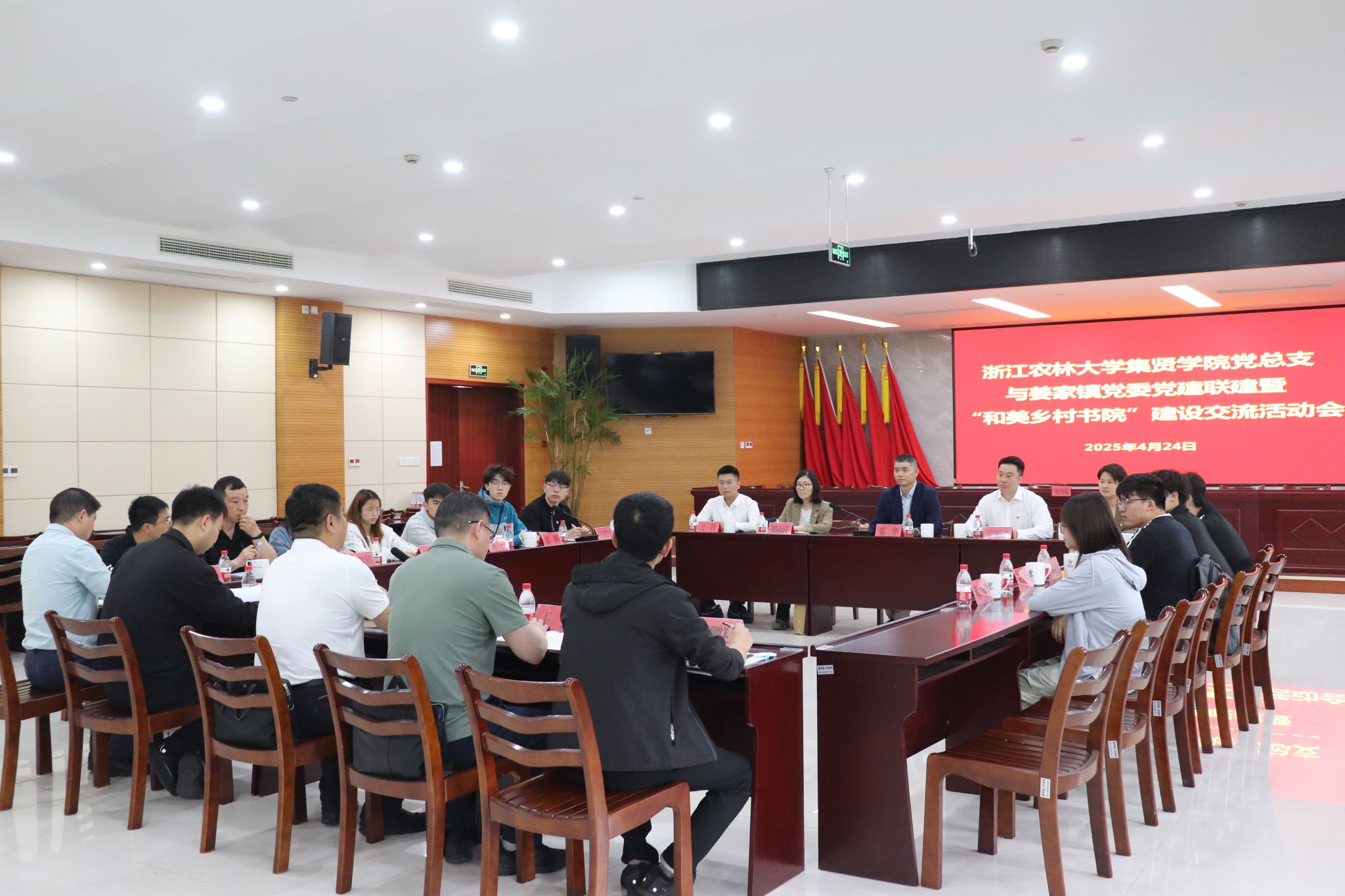 近日,BEAT365英国官网集贤学院负责人、党总支负责人、学院各党支部书记、定向农科生代表一行17人赴淳安县姜家镇开展党建联建暨“和美乡村书院”建设交流活动。双方围绕如何通过党建联建方式,高质量建设“和美乡村书院”主题开展深入交流,共绘校地融合发展蓝图。