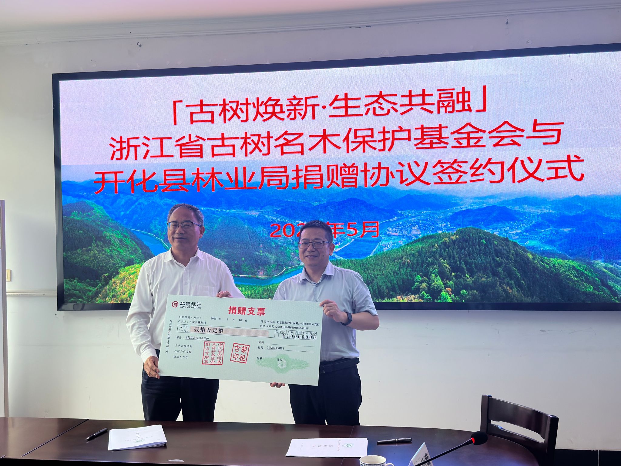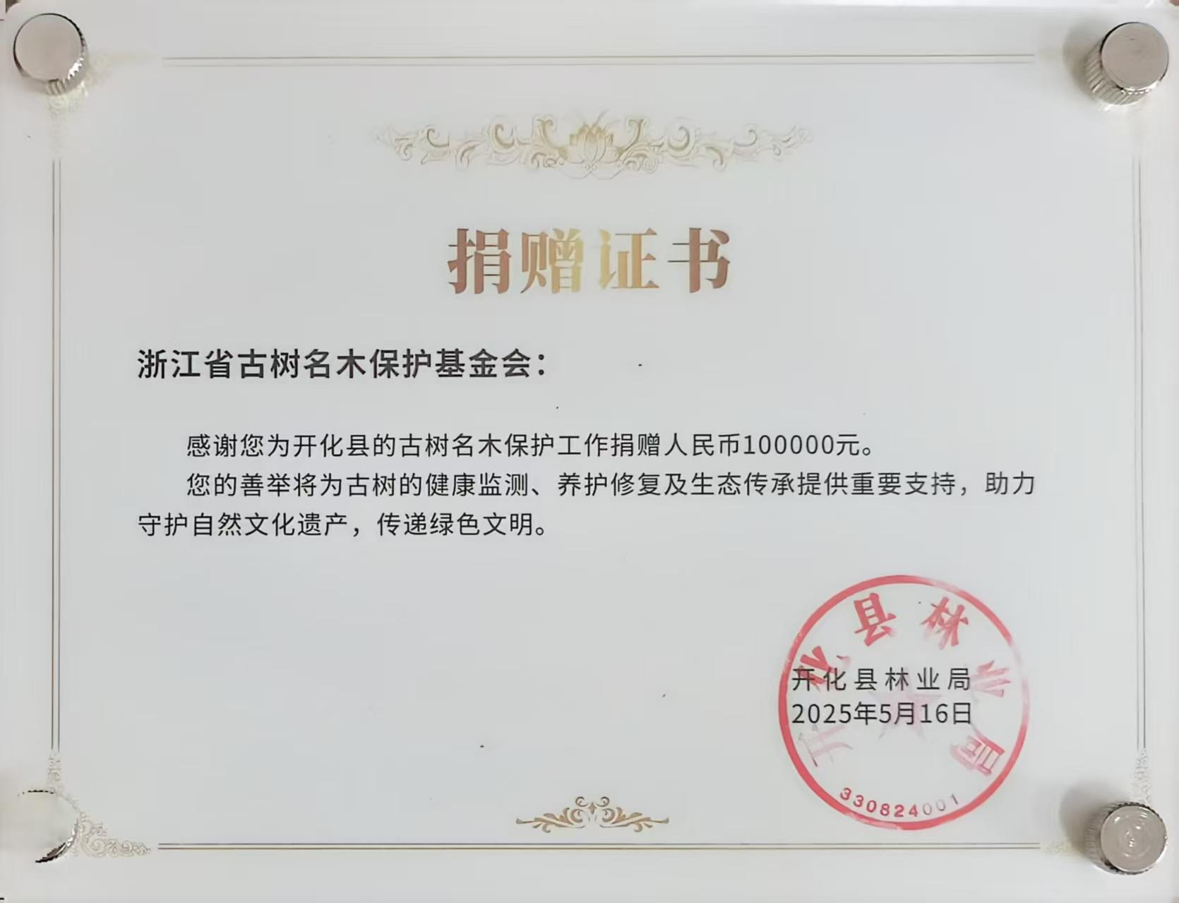 近日,浙江省古树名木保护基金会向开化县林业局捐赠10万元专项经费,用于支持开化县古树名木保护工作。浙江省古树名木保护基金会理事长、校古树名木保护研究院院长胡祖吉,开化县林业局党委书记朱建平等出席捐赠仪式。