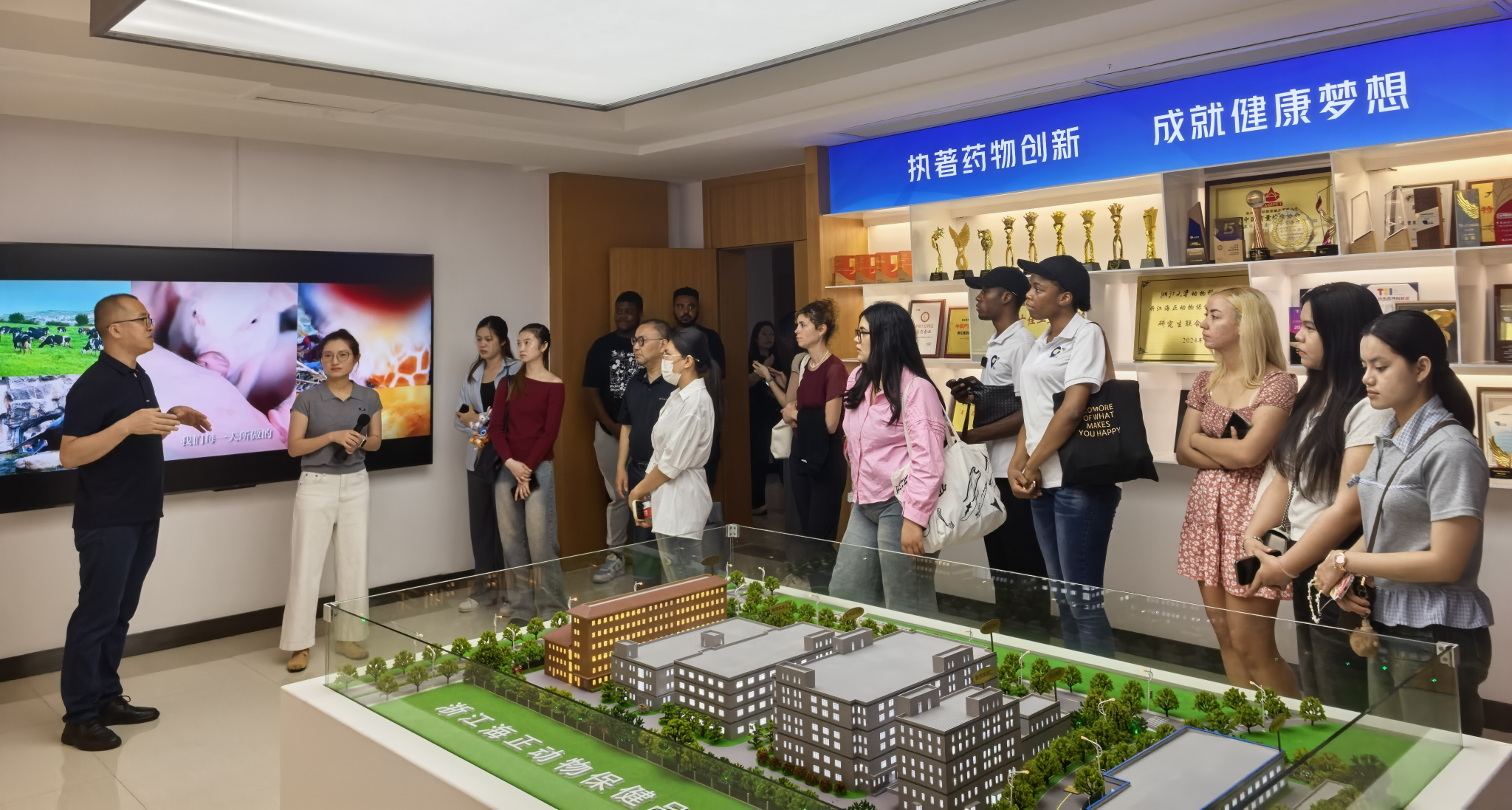 活动中,国际生参观了杭州天元宠物用品股份有限公司和浙江海正动物保健品有限公司的产品展示区与生产实验车间。通过听取两家公司的业务介绍、产品生产流程与市场销售情况,学生们对相关行业有了直观认识,并积极互动交流,探讨未来开展学生实习和跨境电商业务等方面合作的可能性。