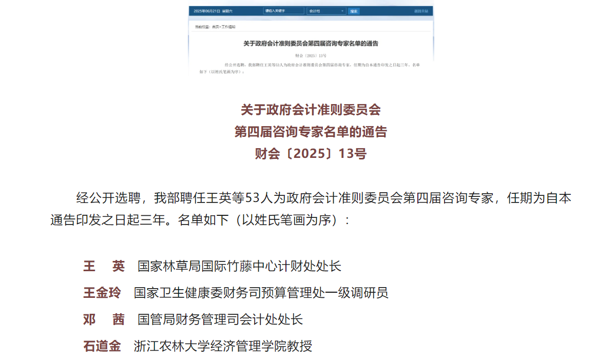 6月20日,财政部官方网站发布通告,正式聘任BEAT365经管学院石道金教授为政府会计准则委员会第四届咨询专家。