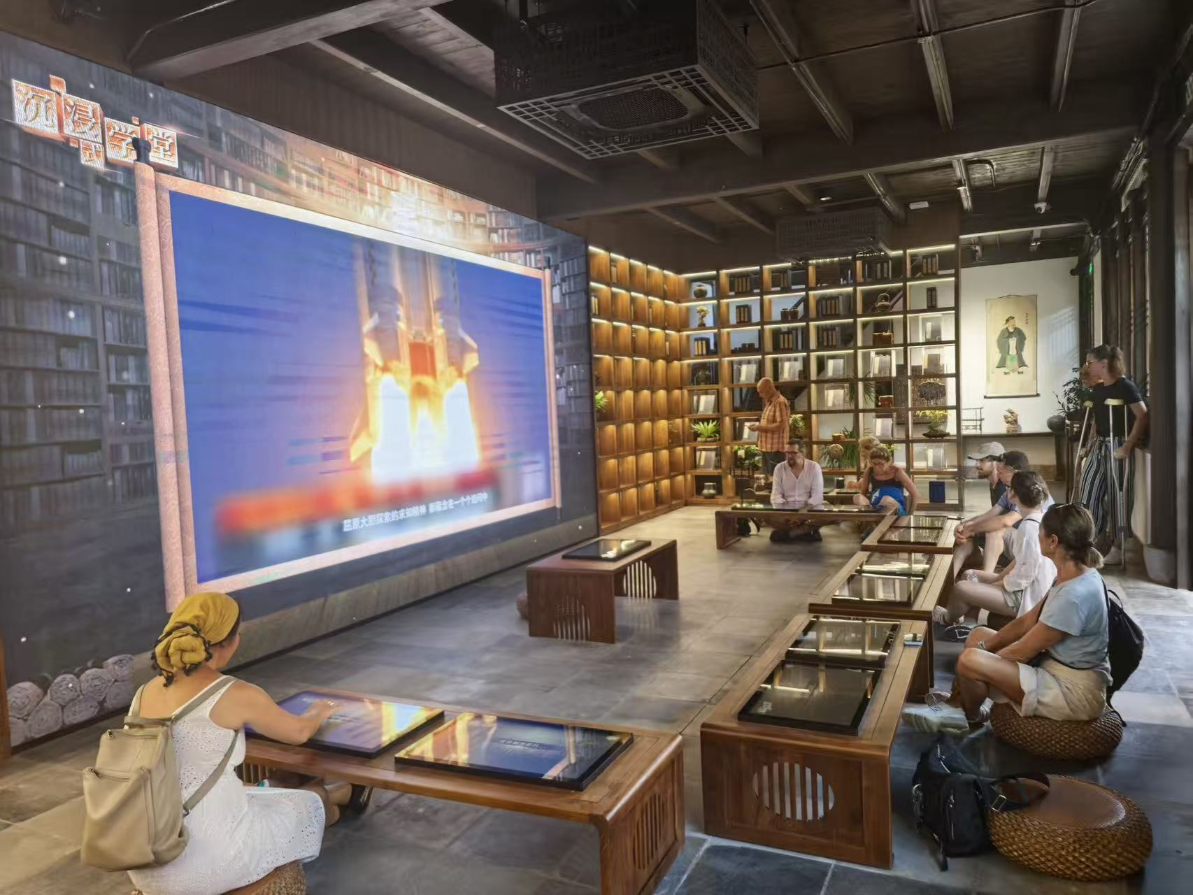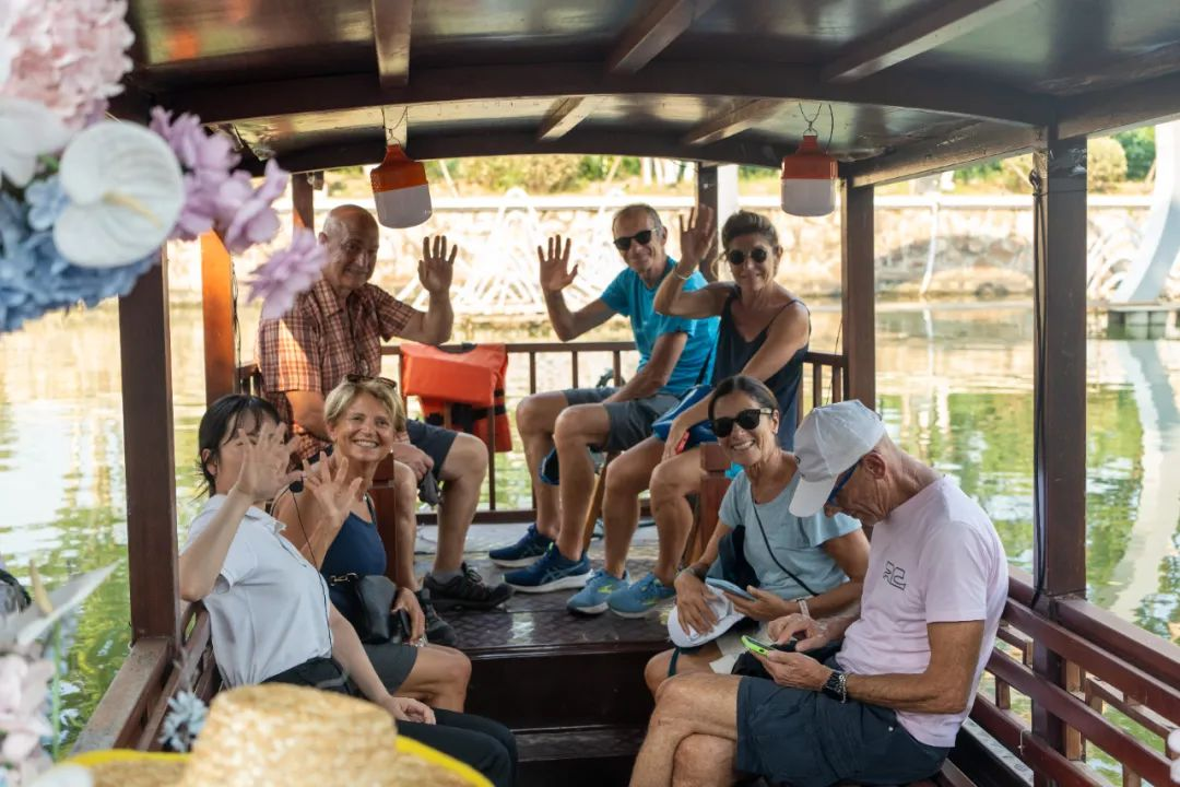 揭牌仪式后,“感知中国 寻韵浙江”中意人文交流暑期学校项目全体营员乘船“穿越”了小镇,沉浸式体验了“水乡”的旖旎风光。他们参观了《典籍里的中国》陈列馆,借助前沿数字科技与沉浸式互动体验,感知中华典籍的博大精深和中华传统文化绵延不绝的历史底蕴与深远魅力。