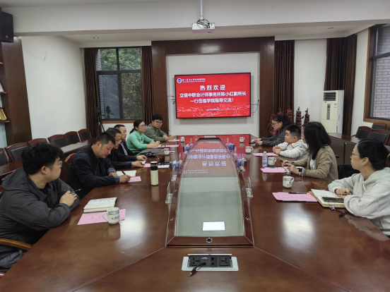 10月30日,立信中联会计师事务所浙江分所陈小红副所长一行4人专程赴经管学院,就党建共建、人才培养、实习实践、毕业生就业等校企合作事宜开展洽谈交流并举行专场招聘会。经管学院党委书记陈劲松、学院副院长、党委副书记、学生办主任、毕业班辅导员等参加洽谈会。