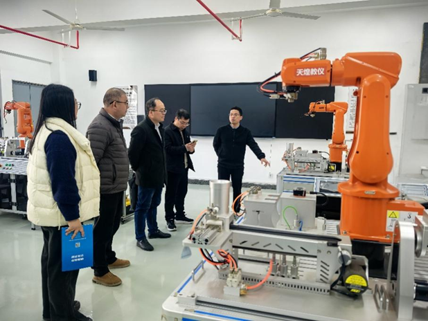 数计学院一行参观了临安区职业教育中心“杭州城西科创智能制造产业学院”,大家走进无人机应用实训室、物联网综合创新实验室、新能源汽车维修车间、工业机器人工作站及智能驾驶模拟平台等实践教学场所,现场观摩了学生的实操训练。参观中,双方还就合作开展学生竞赛指导、职业技能认证、横向技术课题攻关及创新项目孵化等话题进行了互动交流。