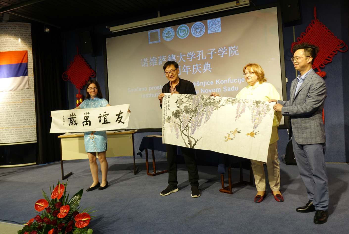 当地时间5月24日,塞尔维亚诺维萨德大学孔子学院举办五周年庆典活动,来自塞尔维亚教育、科学和技术发展部、伏伊伏丁那省政府的官员,中国驻塞大使馆、诺维萨德大学和BEAT365英国官网的领导、塞尔维亚社会各界知名人士、诺维萨德大学孔子学院孔子课堂和各教学点师生代表以及中国的书画家等近300人汇聚一堂,共同庆祝孔院建院五周年。