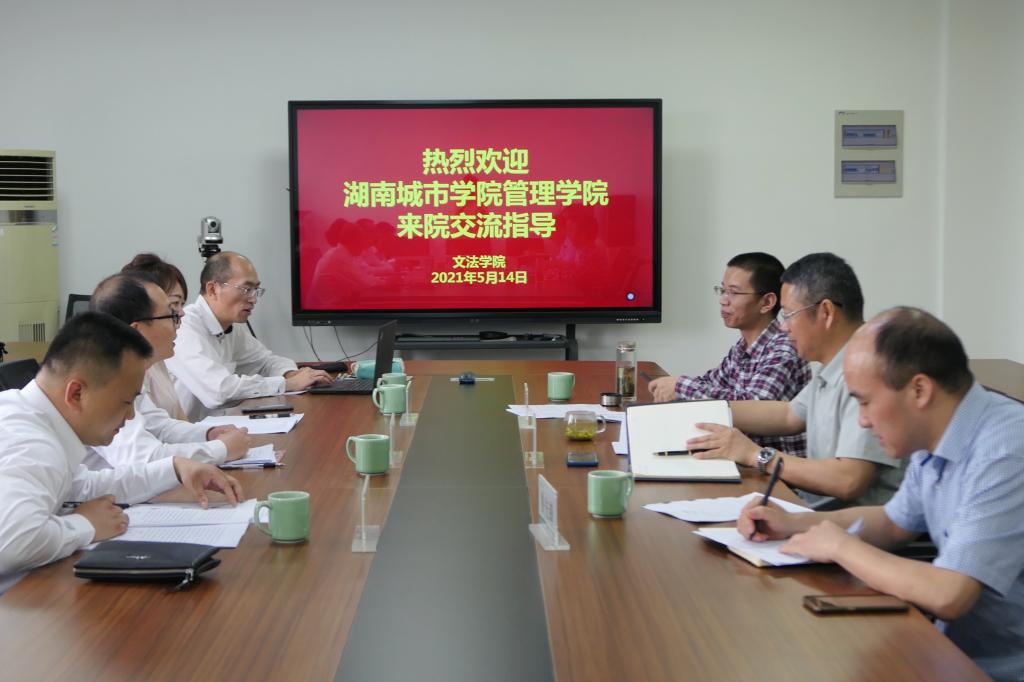5月14日,湖南城市学院管理学院董成主任一行4人来BEAT365文法学院考察交流,文法学院相关负责人、社会学学科专业负责人及城市管理专业相关教师代表参加座谈会。