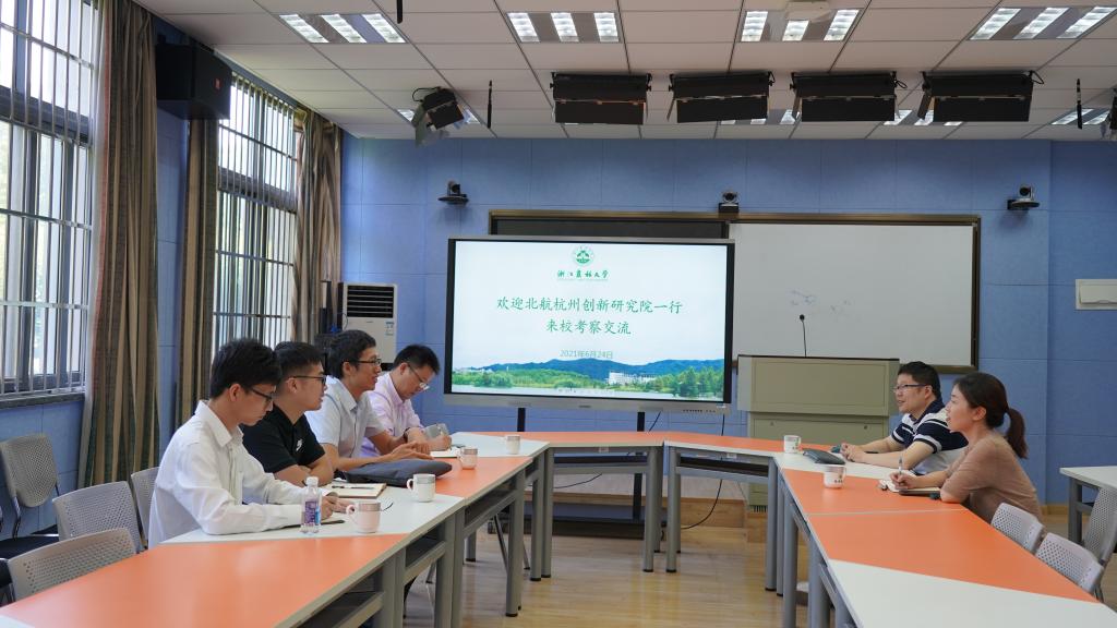 6月24日,北京航空航天大学杭州创新研究院(余杭)副院长杜鹏程一行来校调研交流信息化建设工作。信息中心负责人和相关人员参加座谈交流会。